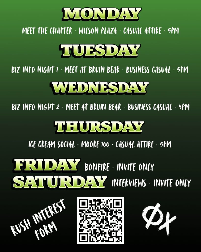 Check out our FAQ for more rush-related questions and answers. Feel free to reach us on Instagram @uclaphichi.